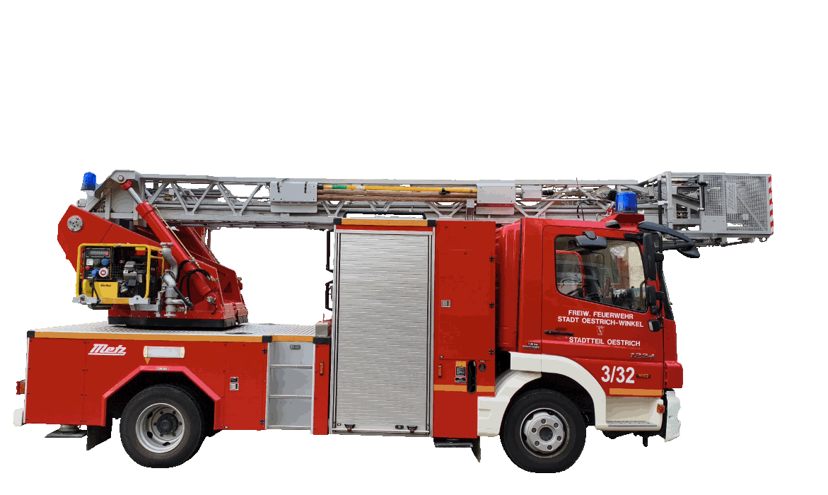 Das Hubrettungsfahrzeug (umgangssprachlich auch als Drehleiter bezeichnet) dient in erster Linie der Menschenrettung aus der Höhe. Der Typ 12/9 ist das kleinste Modell der nach Norm hergestellten Fahrzeuge dieser Art und wurde insbesondere für enge Bebauungen, die in den historischen Stadtkernen des Rheingau-Taunus-Kreis typisch sind, beschafft. Daher rückt die Drehleiter auch überörtlich in andere Städte und Gemeinden des Rheingau-Taunus-Kreis mit aus. Mit dem Rettungskorb können bis zu 2 Personen befördert werden. Die maximale Leiterlänge beträgt 18 Meter. Darüber hinaus können diverse Anbauteile an den Rettungskorb angebracht werden, wie z.B. ein Wenderohr für die Abgabe von Löschwasser, eine Aufnahme für eine Krankentrage oder der Anbau von Scheinwerfern für die Ausleuchtung von Einsatzstellen.Technische Daten